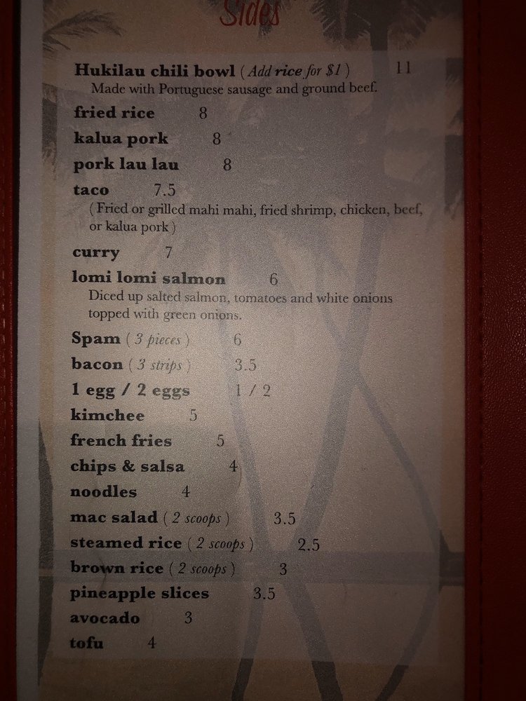 - Poke Sides: Dive into their tantalizing Ahi, Salmon, or Avocado Poke, each dressed in flavorful Aloha shoyu and topped with fresh limu seaweed.