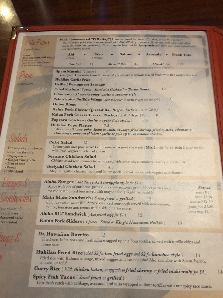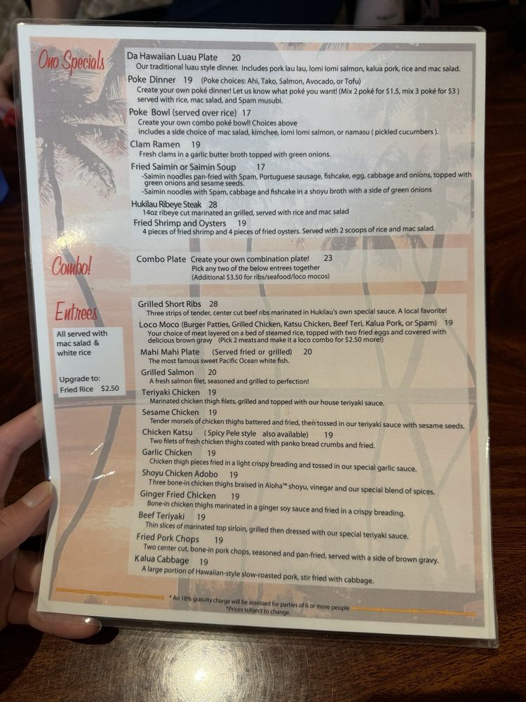 - Ono Specials: Don’t miss the Da Hawaiian Luau Plate, featuring traditional pork lau lau and kalua pork for a true taste of the islands.
